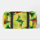 Eine mutige Reisetasche mit einer lebendigen Pop-Art-Anordnung aus Zitronen, Limonen, Erdbeeren und frischen grünen Blättern, die dafür entworfen wurde, um Farbe und moderne Frische auf Reisen, beim Training und am Wochenende zu bringen. Die leuchtende Fruchtgrafik erscheint in knackigen, hochkontrastreichen Details auf dem strapazierfähigen Stoff und verwandelt eine praktische Tasche in ein fröhliches Styling-Statement. Der geräumige Innenraum, der weiche Reißverschluss und die robusten Tragegurte machen sie ideal für Kleidung, Accessoires, Sportausrüstung oder Übernachtungssachen, während die leichte Konstruktion sie angenehm zu tragen macht. Das spielerische Fruchtmotiv verleiht einen freudigen, zeitgenössischen Akzent, der in Flughäfen, Studios und im Alltag hervorsticht. Eine geschenkbereite Wahl für