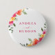 Lebendige rosa Aquarell-Blumenhochzeit Button