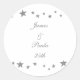 Auf individuellen Aufklebern wird die Malerei von lebhaften Silberstern, die zwei Ränder bilden, mit einem Platzhalter für Ihre personalisierte Nachricht gedruckt. Sie sind großartig für Silber, 25. Hochzeitsjubiläen.