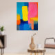 Kühne Schichten intensiver Farbblöcke schaffen eine abstrakte Landschaft, die vor Energie pulsiert. Blau, Rosa, Gelb und Orange interagieren in einer lebendigen und dynamischen Harmonie.