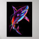Lebendiger Neon-Hai Moderne digitale Ozeanwelt Poster