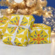 lebendiges gelbes geometrisches Muster mit Rot und Geschenkpapier