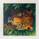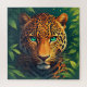 Eine auffallende digitale Malerei eines Leoparden, der aus dichtem Dschungelfoliage hervortritt, wobei die Smaragdaugen der Katze den Betrachter durchbohren. Reiches orangefarbenes Fell mit kühnen schwarzen Flecken vermittelt wilde Schönheit und Kraft.