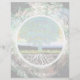 Baum des Lebens in Blau und Grün mit einer verzierten Grenze in einem Kreis.