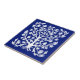 Keramik-Kachel in einem stilisierten, abstrakten Lebensbaum-Design in Weiß auf einem tiefkobaltblauen Hintergrund