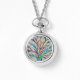 Diese einzigartige Halsketten-Uhr ist mit einem farbenfrohen Mosaik-Design des Baumes des Lebens dekoriert. Original Mosaik © Michele Davies.