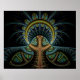 Copyright © 2013, Susan Wallace. Intrikierter abstrakter Baum mit gemusterten Ästen, Wurzeln und Blätter in den Farbtönen Blau, Grün, Braun und Magenta. Eine Halbmondkrone mit federförmigen Blätter aus lebhaftem Chartreuse und Türkis verleiht dem Ganzen den Eindruck eines Pfau-Schwanzes. Geeignet für Plakate oder gerahmte Drucke, entwickelt für Standardrahmen.