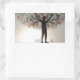 Ein digitales Kunstdesign eines silhouettierten Mannes, der seine Arme in Äste ausstreckt und einen wunderschönen und majestätischen Baum mit bunten Blätter schafft.