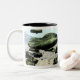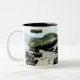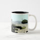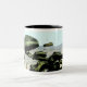 Lebensmittel- und Wassermengen werden in Luft geli Zweifarbige Tasse
