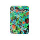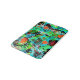Abstrakt in türkisfarbenen, aquamarinen, orangefarbenen, roten, schwarzen, weißen, metallischen Goldtönen und Grüntönen.