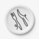 Lebensmittelmesser und Gabel modern grau-weiß Pappteller