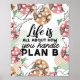 "Das Leben dreht sich alles darum, wie Sie Plan B handhaben" Design-Zitate. Mit Schloss der fliegenden Vögel und niedliche Blume Silhouette Kunst in geometrischer Form. Muster und Zitate für ein schönes Geschenk.