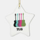 Coole und funky Lebhaft farbene Gitarren Star Ornament. Dieses einzigartige Ornament wäre ein wunderbares Geschenk für einen Musikliebhaber! Passen Sie Ihren eigenen Text an, indem Sie einen Namen oder einen anderen Text hinzufügen.