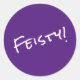 Feisty!, in weißer, moderner trendiger Schriftart-Schrift auf einem lila Aufkleber geschrieben. Dieses Design ist in zwei Größen erhältlich (groß 3" mit 6 zu einem Blatt oder klein 1,5" mit 20 pro Blatt). Sie können auch ein glänzendes oder mattes Finish auswählen. Obwohl es auch in vielen Formen verfügbar ist, sollten Sie, wenn Sie eine andere als die angezeigte Option wählen, vor der Bestellung eine Vorschau anzeigen - nur um sicherzustellen, dass Ihnen die Ergebnisse gefallen.