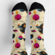 Mit diesen abstrakten Socken, die mit dynamischen magentafarbenen, orangefarbenen und marinierten Elementen ausgestattet sind, verleihen Sie Ihrem Kleiderschrank Kreativität. Das Design besteht aus fett kreisförmigen Formen, geometrischen Akzenten und energetischen Pinselstrichen auf cremefarbenem Hintergrund, die eine moderne und ausdrucksstarke Ästhetik erzeugen. Diese Socken sind perfekt für Kunstliebhaber und Trendsetter geeignet und sind ein einzigartiges und stilvolles Statement-Stück.