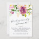 Elegante und moderne Blumenbridmaids laden zum Brunch ein. Ein Bouquet mit lebhaften und farbenfrohen Blume in den Farben Violett, Bordeaux, Creme und Rosa mit üppig grünen botanischen Akzenten. Personalisieren Sie mit Ihren Brautmädchen Brunch Details in eleganter Mitternachtsblauer Typografie mit handgeschriebener Stilkalligraphie. Die Karten werden auf solides Jasper grün umgeschaltet.