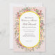 Laden Sie Ihre Lieben zu einer Feier voller Freude und Farbe ein, indem Sie unsere lebendige Blumenarchelle einladen. Dieses atemberaubende Design besticht durch eine üppige und lebendige Grenze aus verschiedenen, hellen Blumen und Grünpflanzen und schafft einen beeindruckenden botanischen Rahmen. Ihre personalisierten Hochzeitsdetails werden elegant in einem schicken, goldfarbenen Oval präsentiert, alles Set vor einem weichen, subtil strukturierten rosa Hintergrund. Die lebhaften Aquarellfarben-Blume bieten eine fröhliche und romantische Touch, die sich ideal für Party im Garten, Hochzeiten im Sommer oder für festliche Veranstaltungen eignet, die einen Pop lebendiger Eleganz erfordern. Anpassen Sie den gesamten Text einfach an Ihre einzigartige Hochzeitsgeschichte.