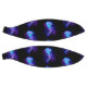 Große, blaue, künstlerisch gezeichnet, leuchtende, helle Quallen, mit langen Tentakeln auf schwarzem Hintergrund mit lila Biolumineszenz. Leuchtende Quallen.