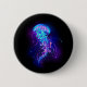 Große, blaue, künstlerisch gezeichnet, leuchtende, helle Quallen, mit langen Tentakeln auf schwarzem Hintergrund mit lila Biolumineszenz. Leuchtende Quallen.