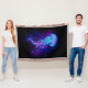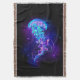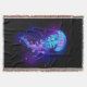 Große, blaue, künstlerisch gezeichnet, leuchtende, helle Quallen, mit langen Tentakeln auf schwarzem Hintergrund mit lila Biolumineszenz. Leuchtende Quallen.