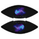 Große, blaue, künstlerisch gezeichnet, leuchtende, helle Quallen, mit langen Tentakeln auf schwarzem Hintergrund mit lila Biolumineszenz. Leuchtende Quallen.