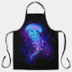 Große, blaue, künstlerisch gezeichnet, leuchtende, helle Quallen, mit langen Tentakeln auf schwarzem Hintergrund mit lila Biolumineszenz. Leuchtende Quallen.