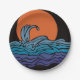 Lebhafte, farbenfrohe Ozeanwellen und Sonnenunterg Pappteller