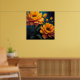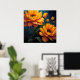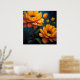 Lebhafte farbgelbe Orange-Blume auf blau 1:1 Poster