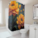 Lebhafte farbgelbe Orange-Blume auf blau Duschvorhang