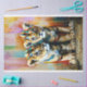 "Vibrant Wilderness: Colorful Cub Companions" Dieses digitale Kunstwerk mit dem Titel "Vibrant Wilderness" erfasst den spielerischen Geist von zwei Löwenjungen durch einen abstrakten und farbenfrohen Stil. Die Jungen sind mit blauen, orangefarbenen, gelben und grünen Strichen geschmückt und vermitteln ein Gefühl von jugendlicher Neugier und Freundschaft. Die skurrile Atmosphäre wird durch die vertikalen Streifen verschiedener Farben im Hintergrund noch verstärkt und schafft so eine lebendige und dynamische Szene.