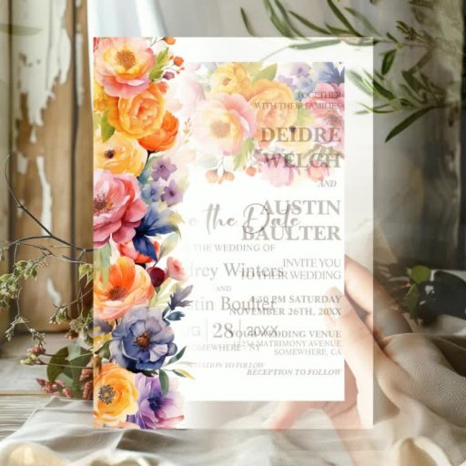 Eine lebendige Frühjahrs-Blumen-Hochzeit RSVP Antwortkarte mit Ihrer Einladung für Ihre Gäste, ihre Teilnahme an Ihrem besonderen Tag zu bestätigen.