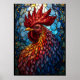 Entspannen Sie in diesem atemberaubenden, lebendigen Glasroster mit einem majestätischen Hahn in einem Mosaik aus fetten Rottönen, Orangen und Blues. Diese auffällige Wandkunst verbindet traditionelle Buntglastechniken mit modernem Design und verleiht jedem Zuhause- oder Bürodekor einen farbenfrohen und eleganten Touch.