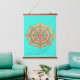 Lebhafte Gold Türkis Blue und Coral Om Mandala Wandteppich Mit Holzrahmen