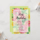 Schöne abstrakte Aquarellfarben-Rosa-Blume mit gelben Knospen und grünen Blätter, perfekt für die Geburtstagsfeierlichkeiten JEDER Frau! Klicken Sie auf den CUSTOMIZE-Link, um Informationen hinzuzufügen, zu löschen, zu verschieben und auszurichten, die Schriftart, die Schriftart-Farben und sogar die leuchtend grün Hintergrund-Farbe zu ändern. TELLER, Servietten und andere verfügbare Posten —> http://bit.ly/2WIIuSV <