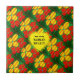 Lebhafte Farben. Muster aus 4-blättrigen, gelben und roten Blume, mit grünem Hintergrund. Schwindelgelbes Herz mit 2 individuell anpassbaren Texthaltern. Große Fliesen für die Weihnachtszeit Dekoration in der Küche. Teil der Plethora of Patterns Collection.