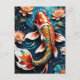 Lebhafte Koi und wunderschöne Blume Aquatic Scene Postkarte
