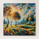 Mit diesem lebendigen Landschaftsdesign, das reiche, lebendige Farbtöne beherbergt, verleihen Sie Ihrem Dekor einen farbenfrohen Touch. Die kühne Blues, die feurigen Orangen, die üppigen Grüntöne und die goldenen Gelbtöne schaffen eine dynamische und lebendige Szene und machen dieses Kunstwerk zu einem auffallenden Brennpunkt, der Wärme und Energie in jeden Raum bringt.