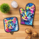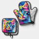 Lebhafte Neon Kitty Art Ofenhandschuh & Topflappen-Set
