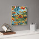 Lebhafte Orange-Blume inmitten wirbelnder Blues Quadratische Wanduhr