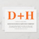 Lebhafte orange und weiße Initialen fett Typografie Einladung Hochzeit. Auf der Rückseite befindet sich ein geometrisches Muster.