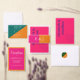 Lebhafte, farbenfrohe, minimalistische Hochzeitskollektion mit hellen Rosa- und Orangenfarben. Farben mischen und passen