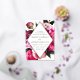 Elegante blumengeschmückte Einladungen mit Ihren Hochzeitsdetails in einem Diamantenrahmen aus Goldfolie, umgeben von wunderschönen, lebhaften Rosa- und Rosatönen mit üppig grünen Blätter. Die Goldfolie und die Peony-Einladungen kehren zu einem hellrosa Hintergrund mit Platz für zusätzlichen Text und Bildern um.