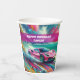 Lebhafte Pink Sportscar am Tropical Beach Pappbecher
