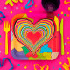 Ein buntes und lebendiges Retro-Herz-Design. Dieses Design wirkt auf diese Paper-Teller sehr effektiv