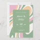 Erleben Sie Ihre Hochzeitsfeier mit unseren abstrakten Einladungen! Lassen Sie Ihre Veranstaltung mit Charme und Eleganz in einem lebhaften, rosafarbenen, grünen und cremefarbenen abstrakten Hintergrund mit gewellten Linien ausklingen.