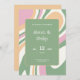 Lebhafte rosa, grüne und cremefarbene Linien Hochz Einladung