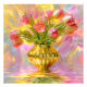 Mit diesem atemberaubenden Blumenwerk mit rosa Tulpen in einer goldenen Vase fügen Sie Ihrem Raum eine Touch von Eleganz und Lebensfreude hinzu. Set vor einem traumhaften, pastellfarbenen Hintergrund, strahlt dieses Design Wärme und Schönheit aus und ist ideal für Wohngestaltung, Geschenke und Naturliebhaber. Ideal für Wandkunst, Telefongehäuse und Zubehör.