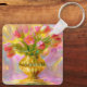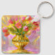 Lebhafte rosa Tulips in der goldenen Vase Schlüsselanhänger