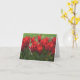 Lebhafte rote Tulips aus einem originellen Aquarellbild. Eine perfekte Sake-Karte, die Sie sich selbst rahmen können.