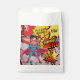 Lebhafte rote und gelbe Superheldenkarikatur Geschenktütchen